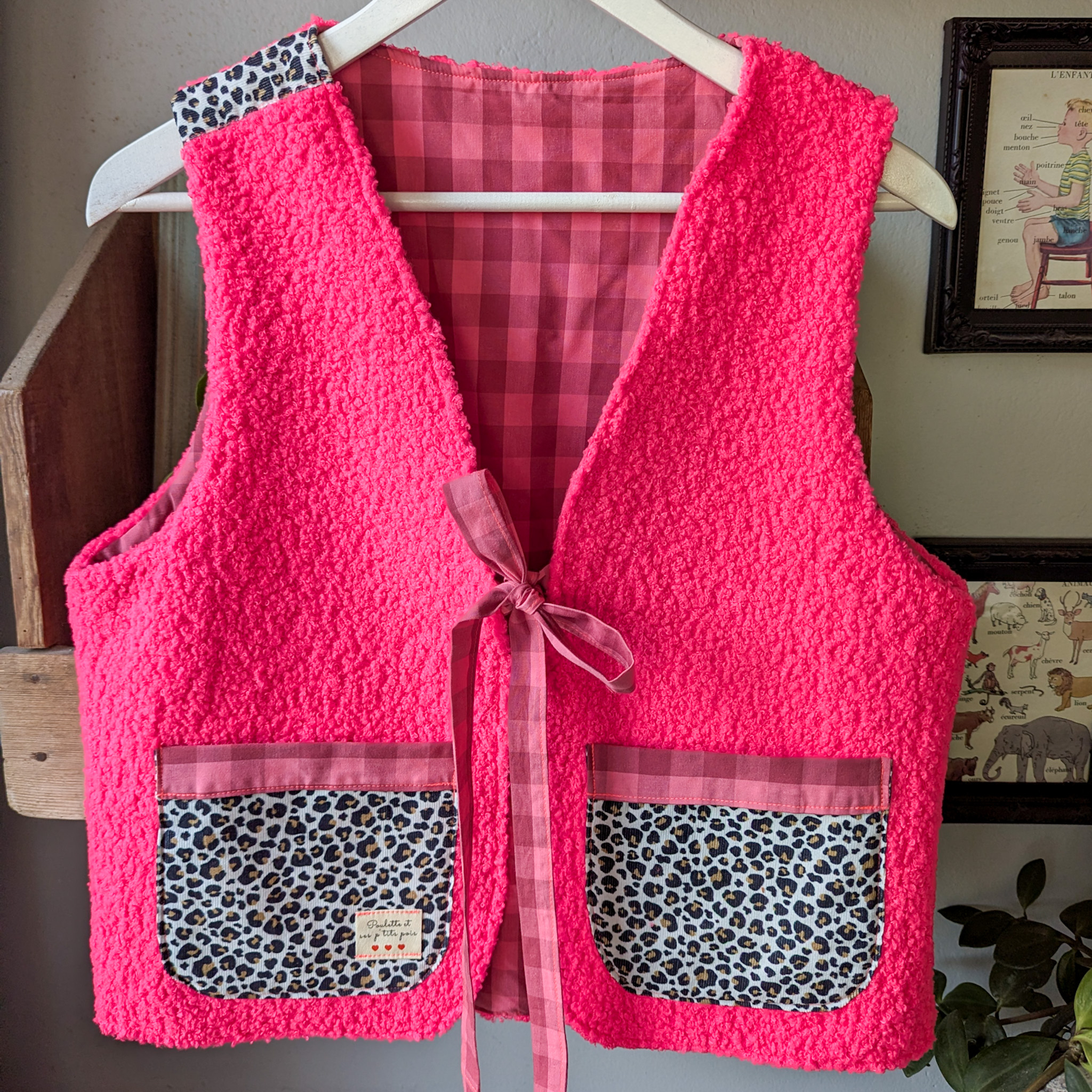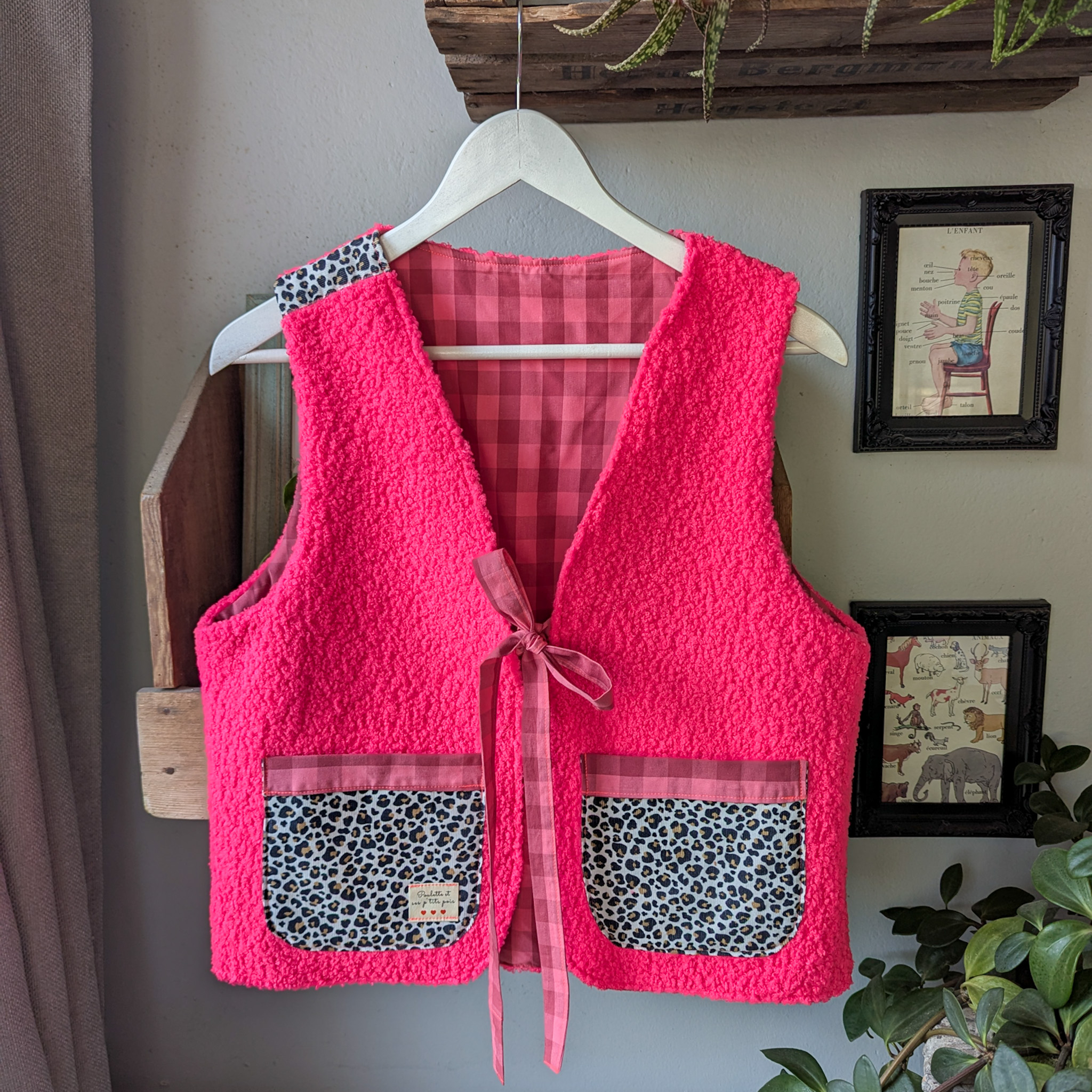 Gilet sans manches rose fuchsia et léopard pour réveillé ton style!