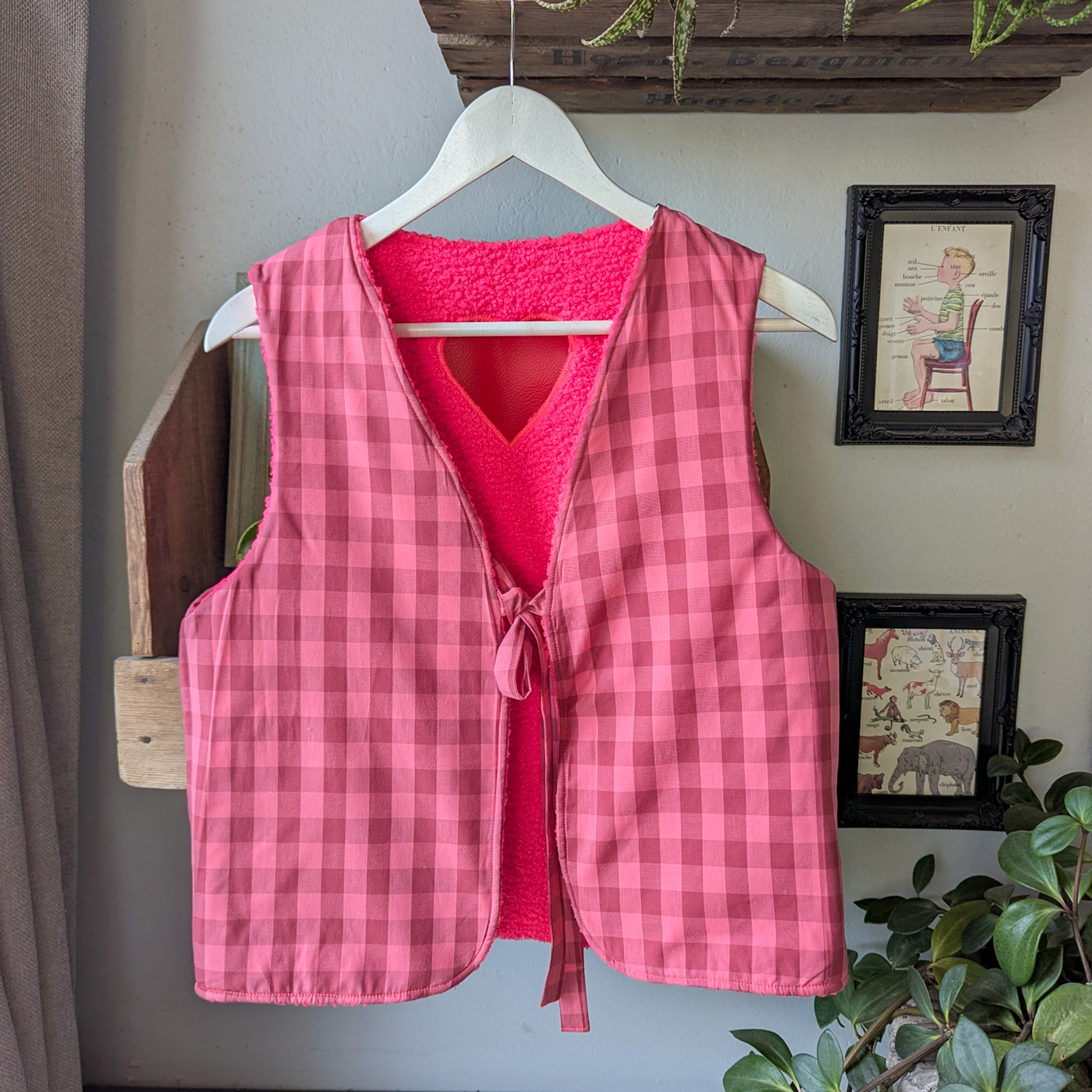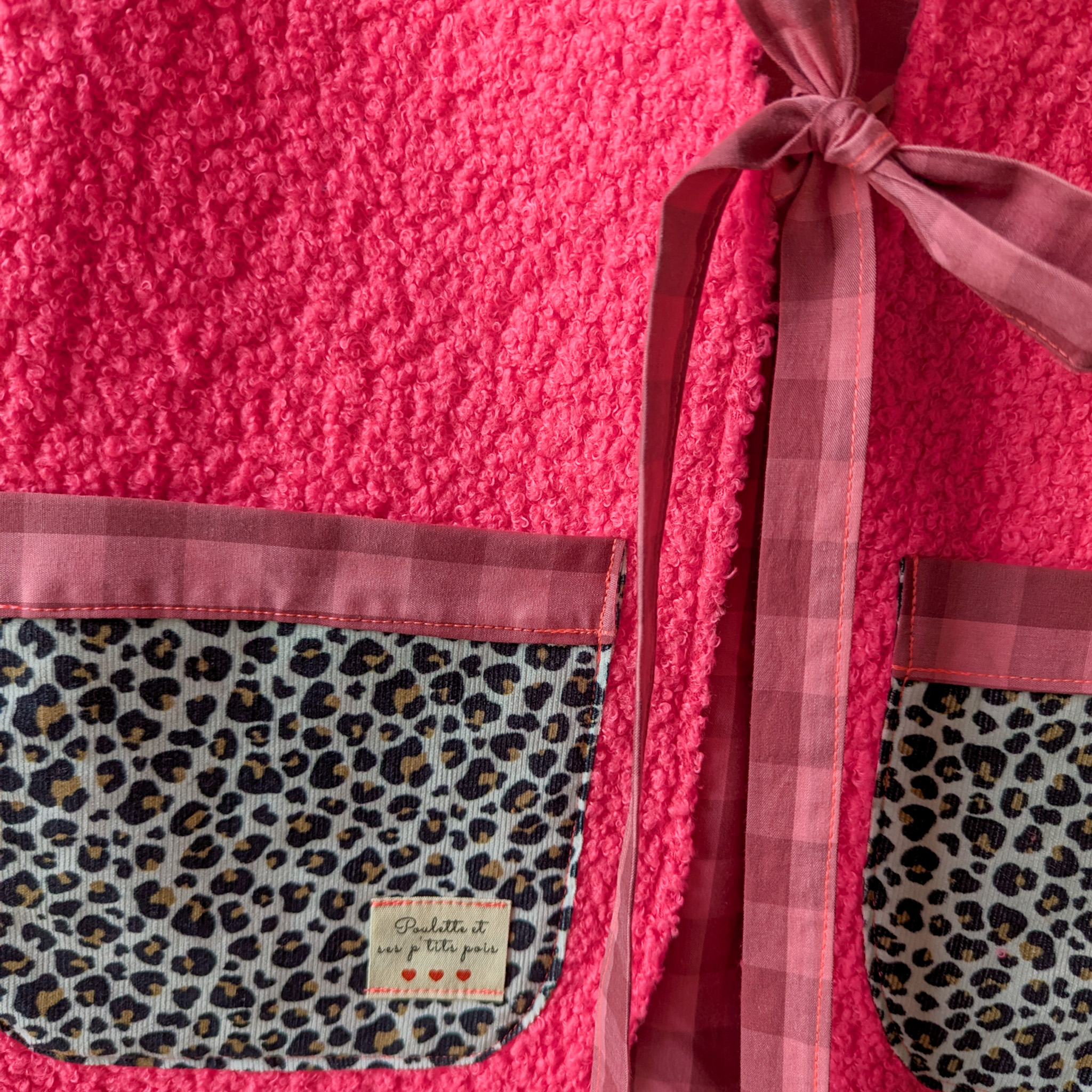 Velours et intérieur en coton vichy rose.