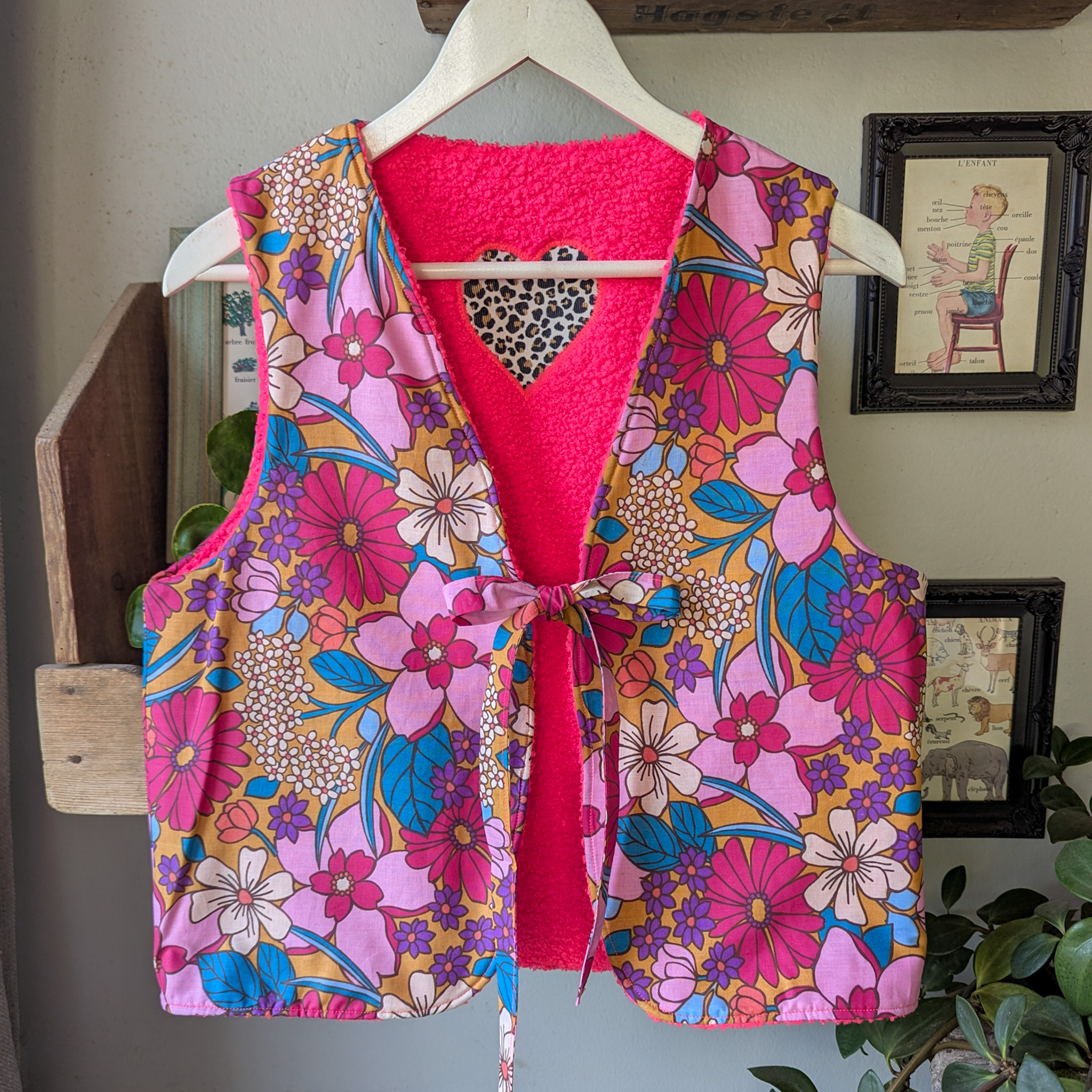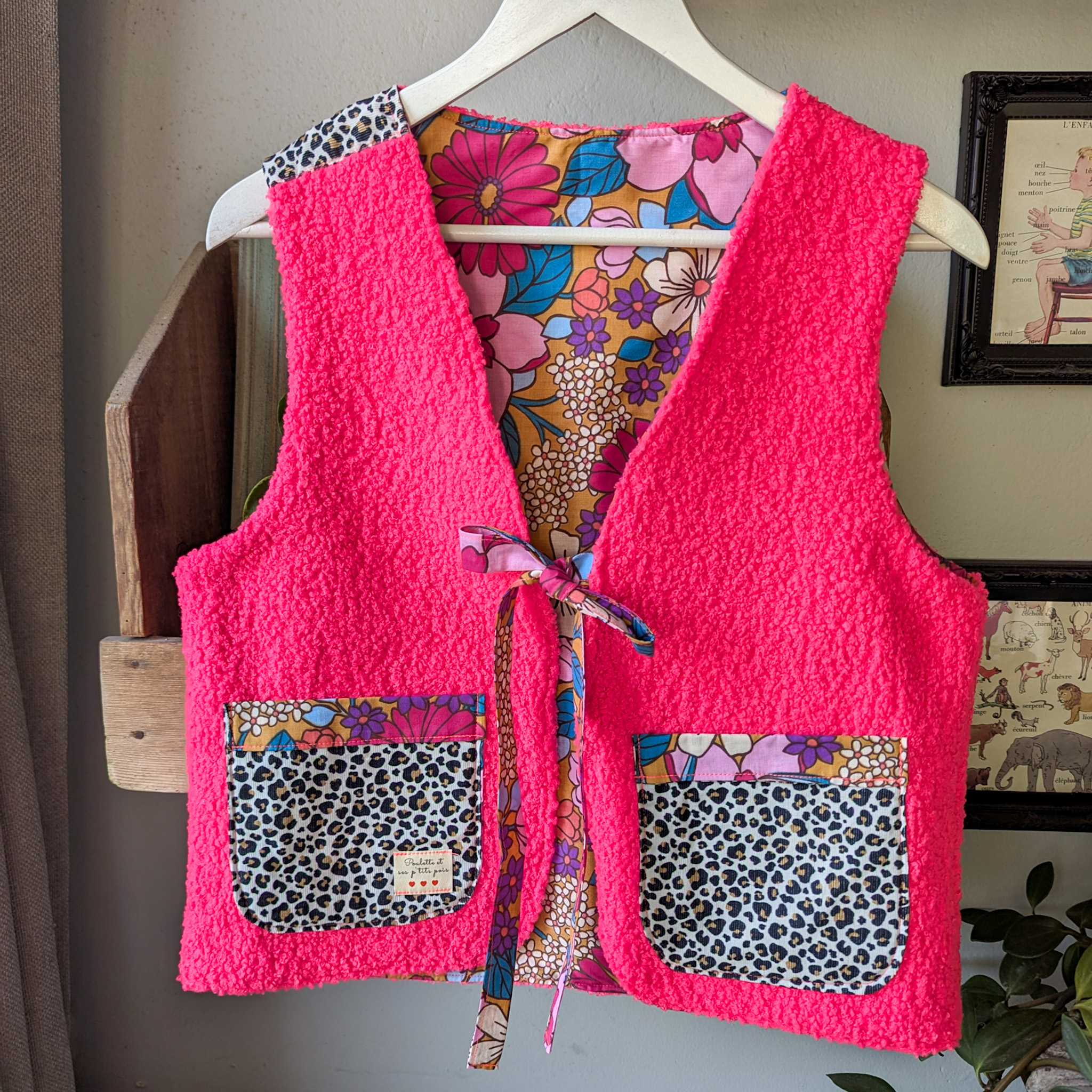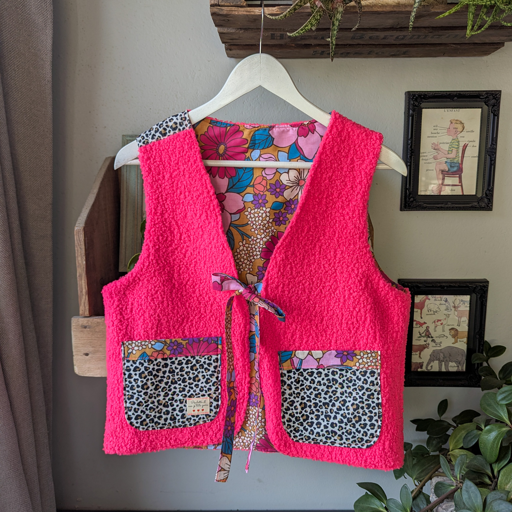 Gilet sans manches rose fuchsia et léopard pour réveillé ton style!
