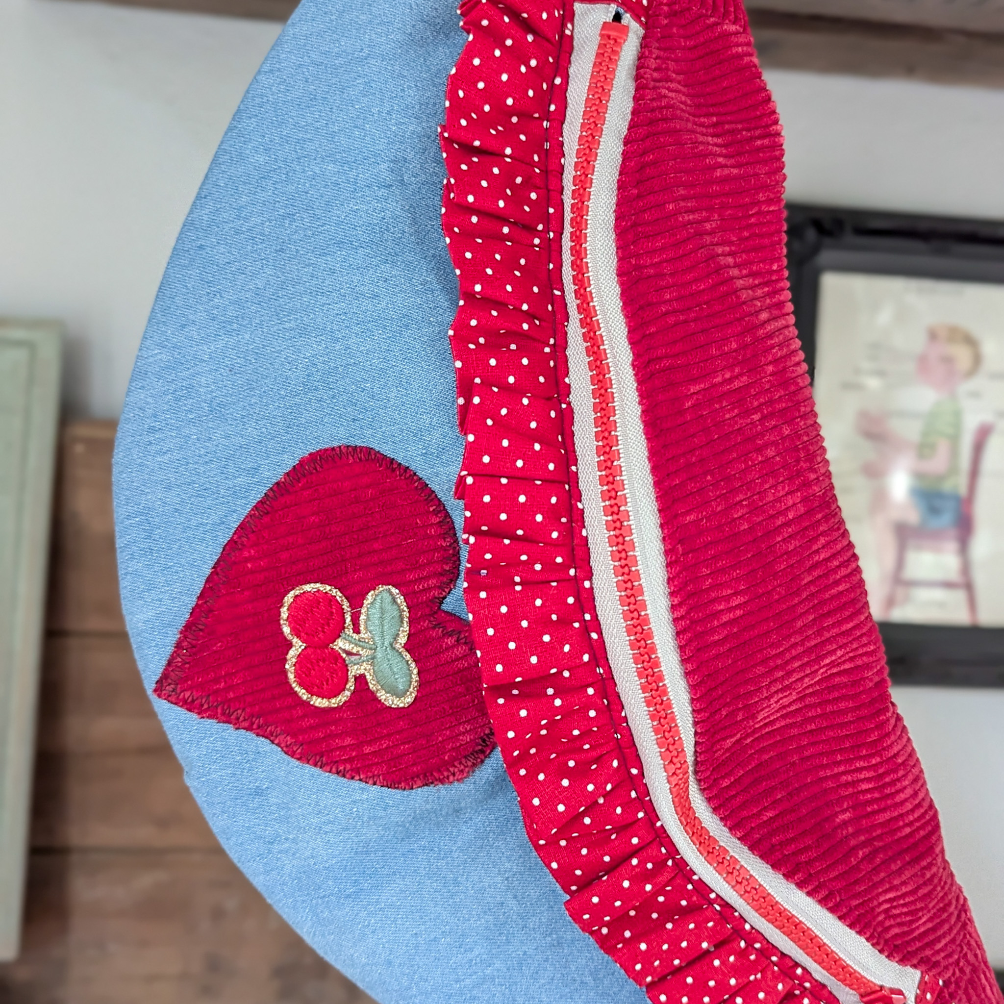 A l’intérieur de la bananette j’y ai cousu une poche avec une bouton pression pour y ranger tes petites affaires. Et tu découvriras le petit plus, un élastique de couleur pour y glisser un crayon ! C’est top ça non ?