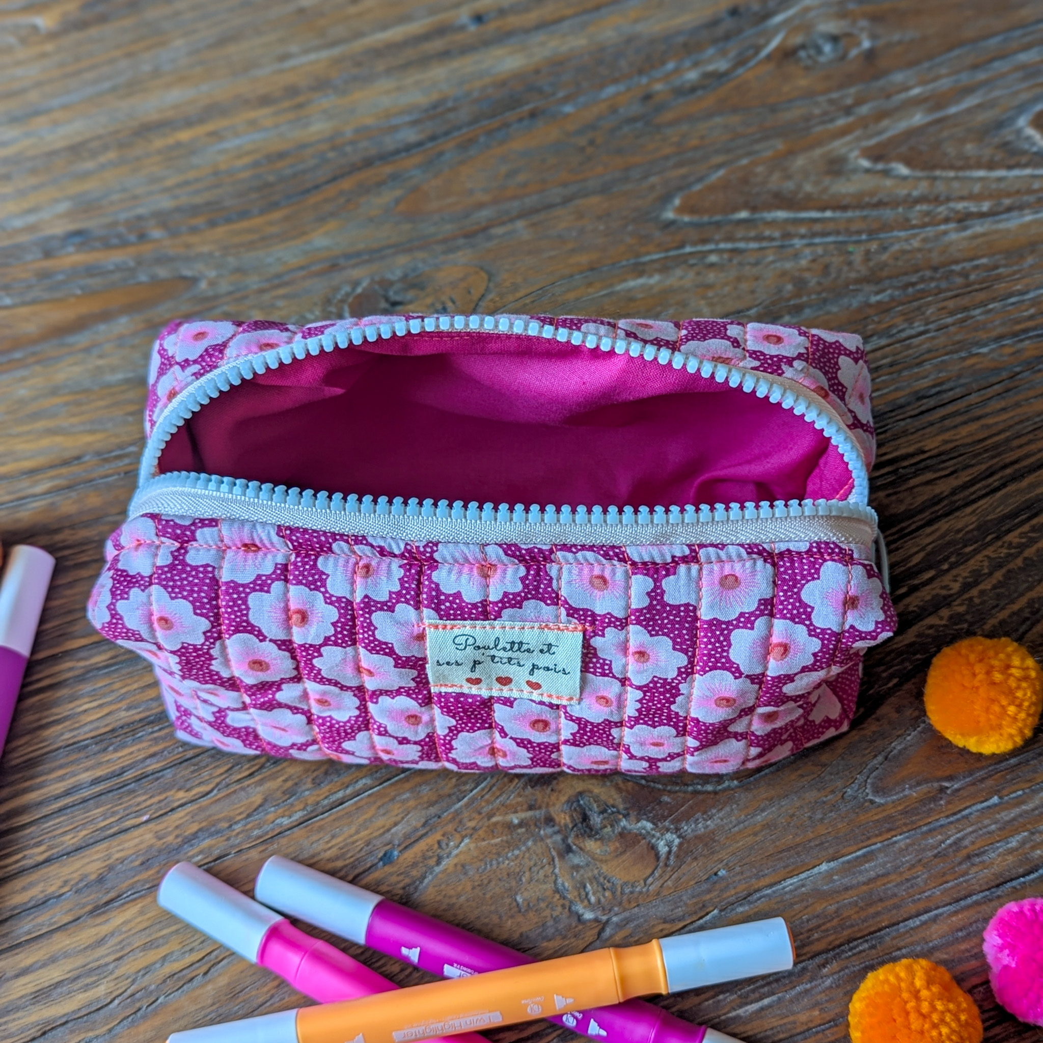 Chaque trousse est une pièce unique, confectionnée avec soin dans un tissu matelassé aux imprimés coloré et pleins de pep’s.
