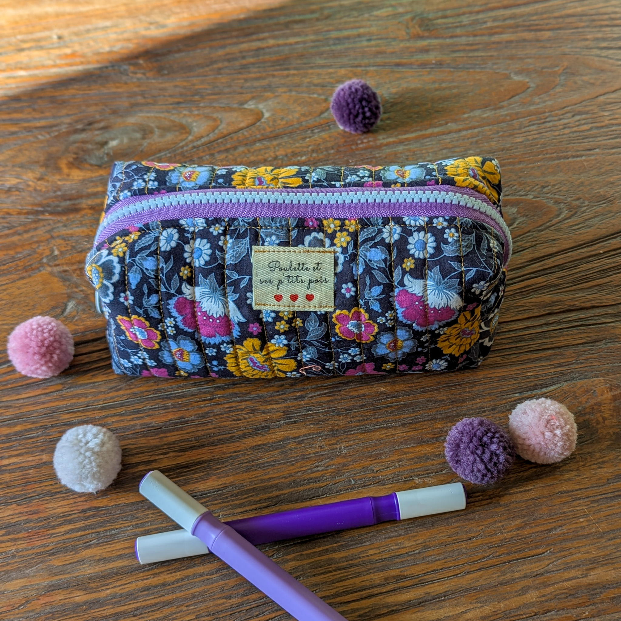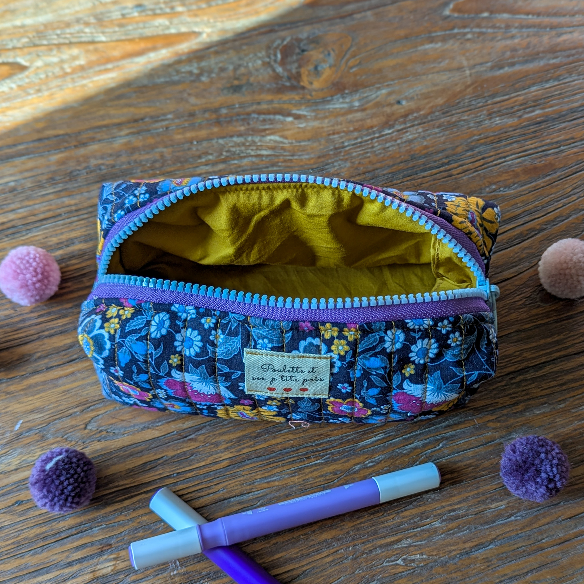 Chaque trousse est une pièce unique, confectionnée avec soin dans un tissu matelassé aux imprimés coloré et pleins de pep’s.