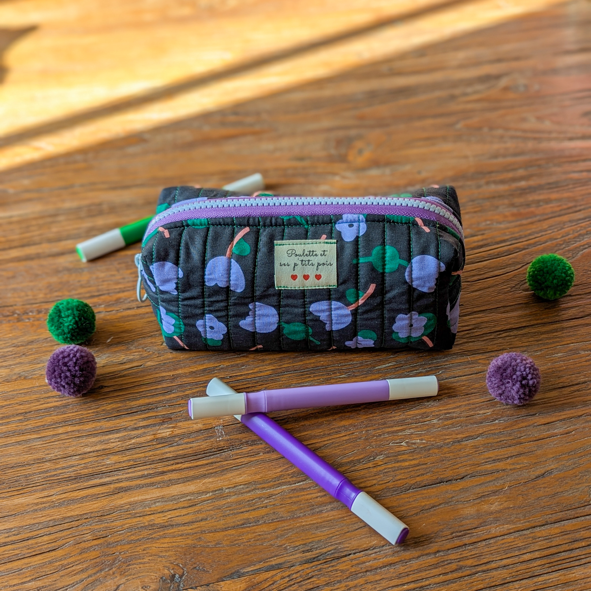 Chaque trousse est une pièce unique, confectionnée avec soin dans un tissu matelassé aux imprimés coloré et pleins de pep’s.